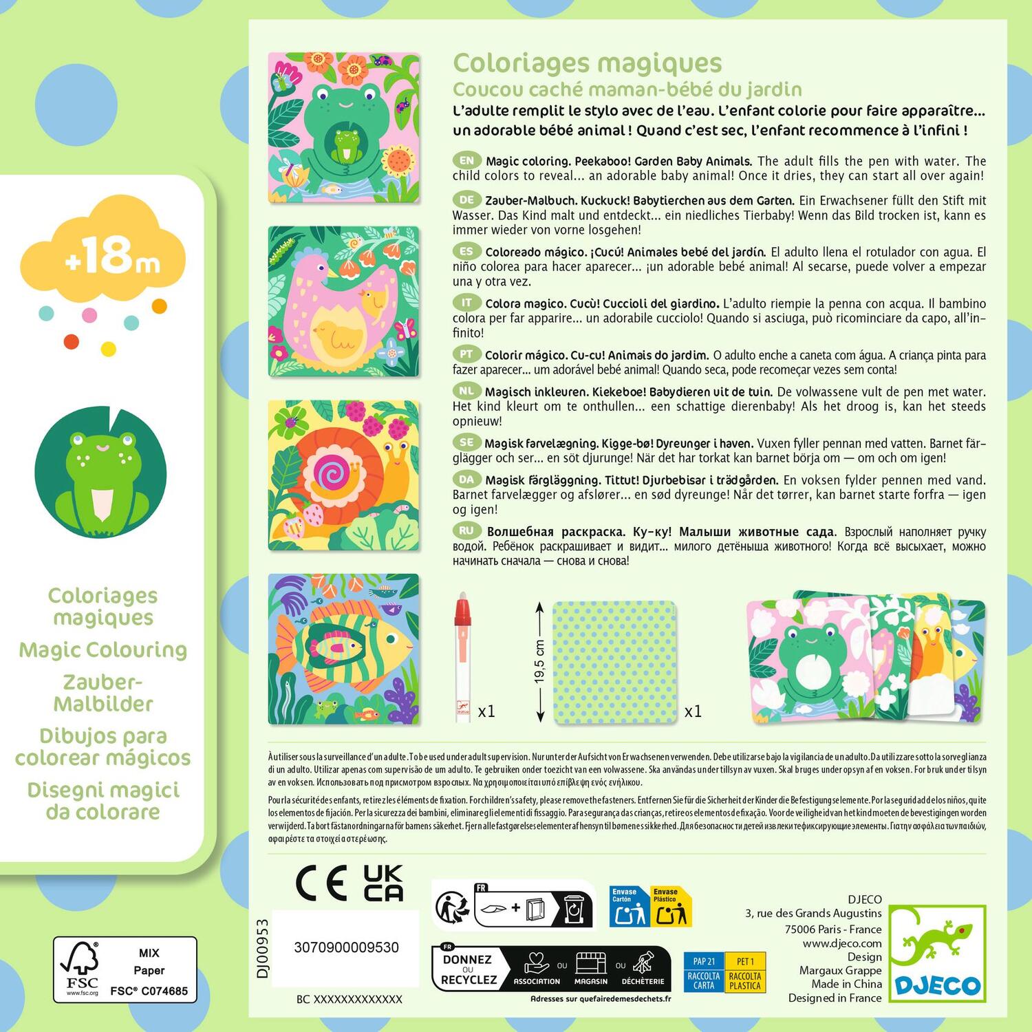 Djeco, fin dal 1954, crea giocattoli e materiali creativi che contribuiscono allo sviluppo del bambino, grazie a degli oggetti divertenti, educativi e che stimolano l’immaginazione e che si distinguono non solo per l'eccellente qualità dei materiali impiegati, ma anche per la rara capacità di abbinare -in ciascuno dei suoi prodotti- finalità ludiche e didattiche valorizzando il design che è sempre affidato illustratori professionisti, designer e artisti.