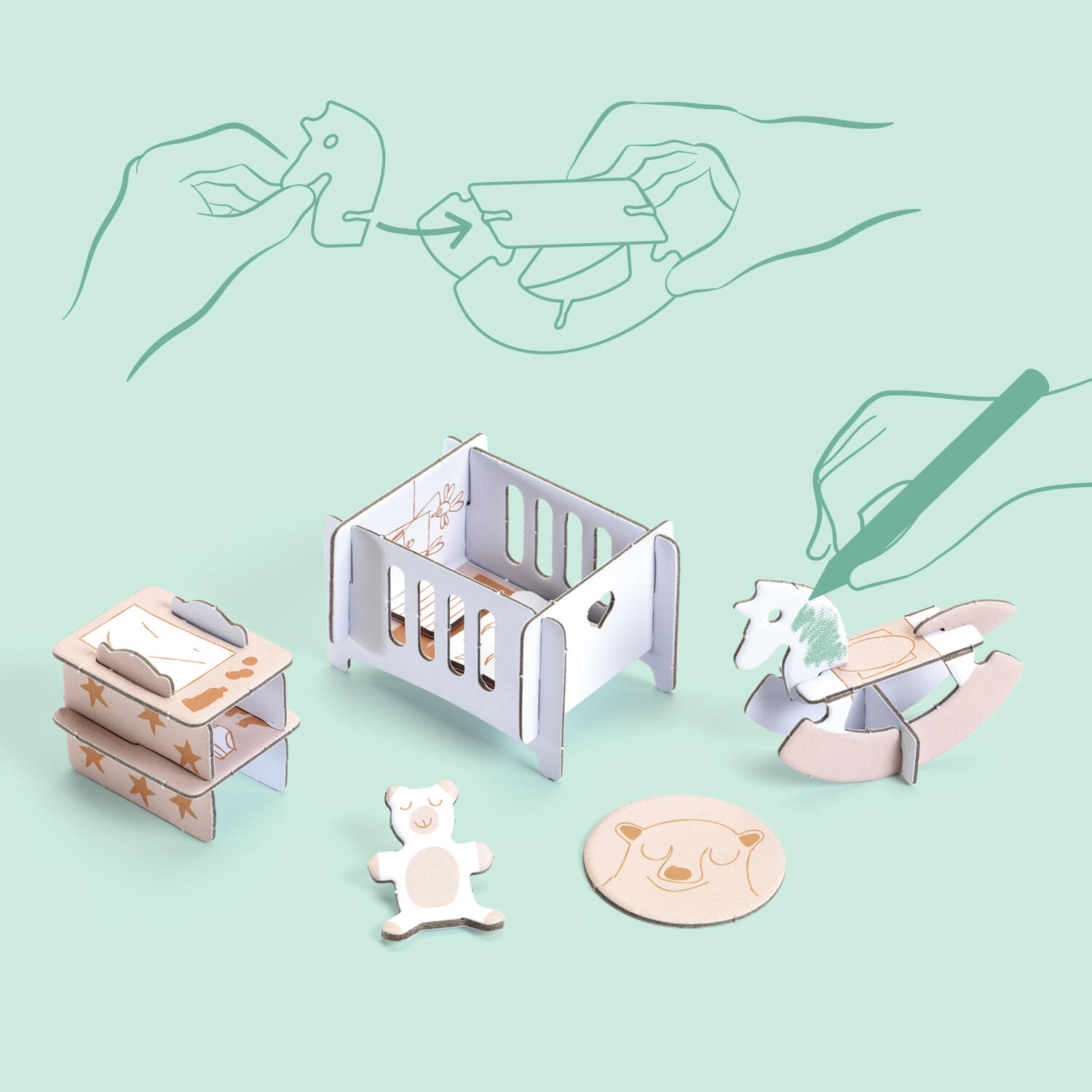 Assemblaggio senza colla né forbici grazie agli elementi pretagliati in cartone spesso e resistente.