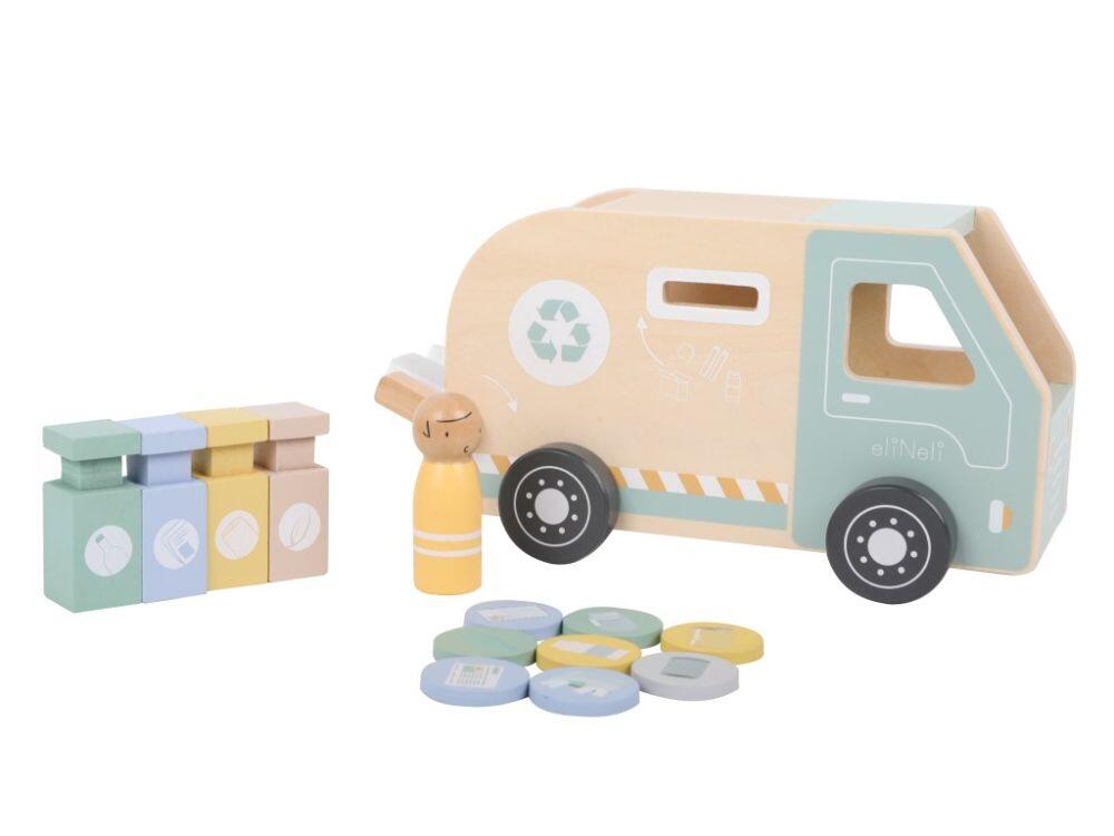 Il camion della spazzatura in legno è un sogno che diventa realtà per tutti i bambini che guardano con entusiasmo fuori dalla finestra in attesa del camion della spazzatura e non riescono a staccare gli occhi dalla strada. Il camion della spazzatura con accessori realistici permetterà ai bambini di calarsi rapidamente nel loro ruolo preferito, quello del netturbino, e di provare il suo lavoro.