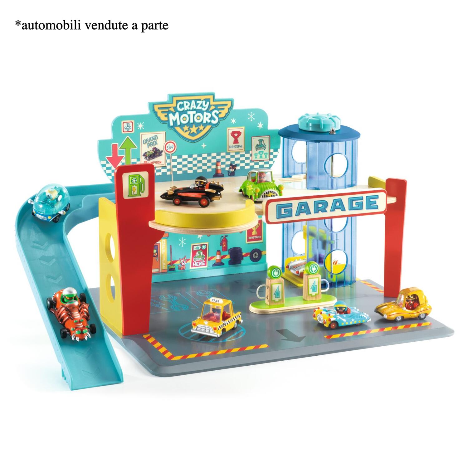 Il garage in legno ideale per giocare con le macchinine Crazy Motors