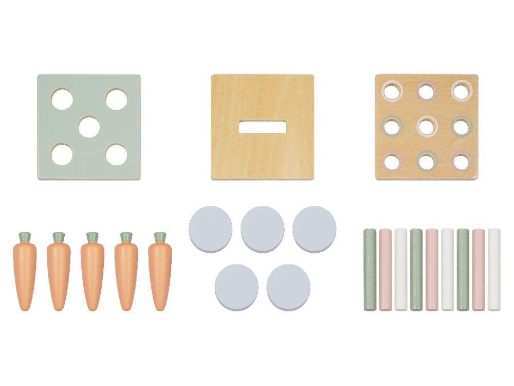 Grazie al pratico cassetto, i bambini possono facilmente rimuovere il contenuto che hanno inserito all'interno del cubo, come cilindri colorati e dischi blu, assicurando che il divertimento non finisca mai.