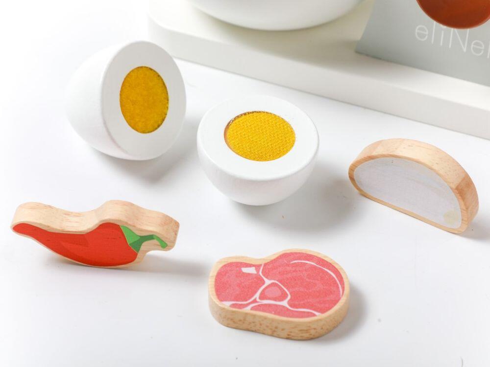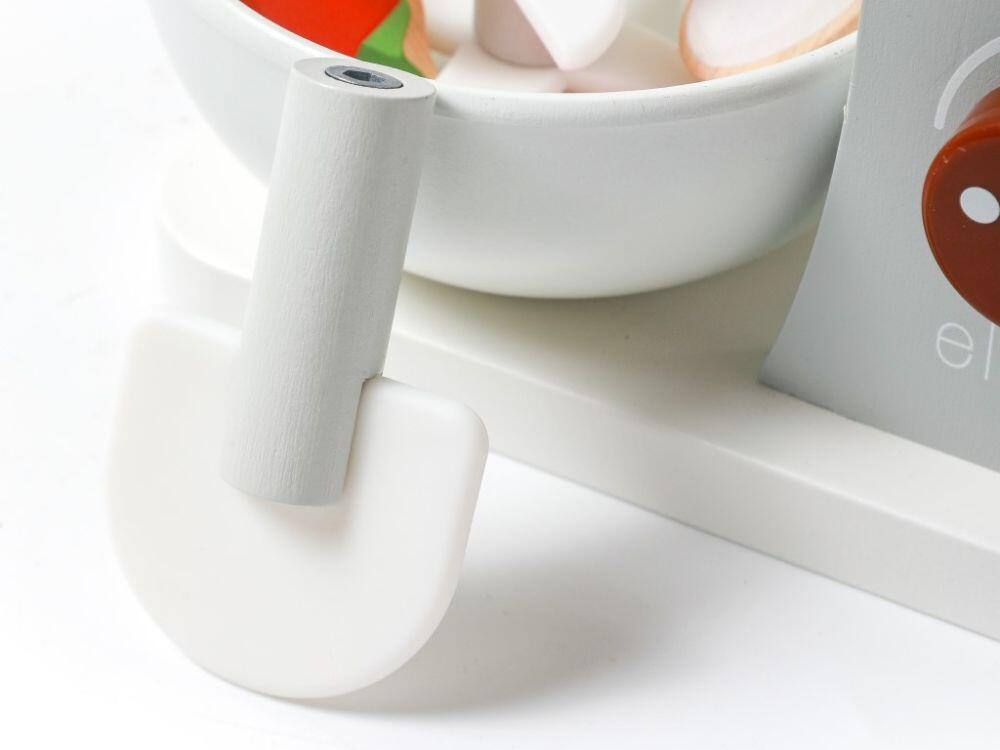 Il set da cucina per bambini con accessori, realizzato in legno naturale di alta qualità, è un must in ogni cucina per bambini. Con il robot da cucina, i bambini possono preparare deliziosi biscotti da servire durante un tè o un caffè organizzato per le loro bambole preferite, i peluche o i genitori. Il robot da cucina in legno dai colori vivaci è un giocattolo educativo che permette ai bambini di imitare le attività degli adulti in modo sicuro. I bambini potranno provare a lavorare con il mixer, stendere la pasta e cuocere i deliziosi biscotti inclusi nel set. La confezione include un mixer in legno e altri accessori in legno: una ciotola, un piatto (vassoio), un mattarello, farina e 2 biscotti dall'aspetto delizioso.